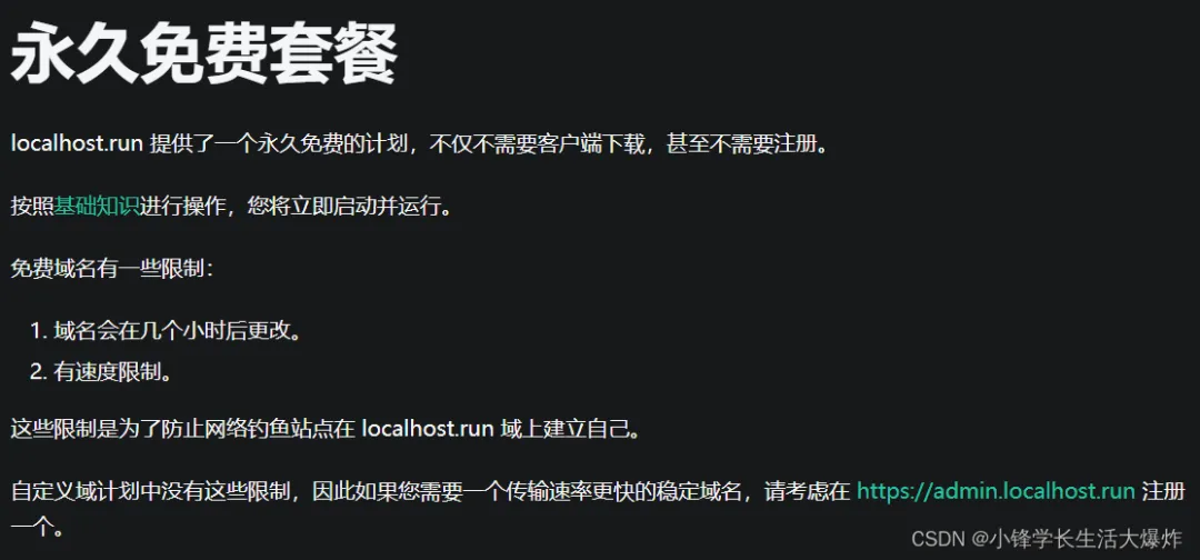 这里推荐一个既不用下载软件,又不需要注册账号的免费内网穿透工具:localhost.run。
