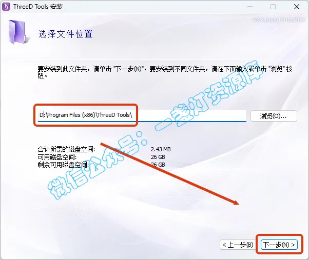 4.选择软件安装路径,将首字符C改为D表示安装到D盘,电脑用户名和安装路径不要出现中文,点击【下一步】
