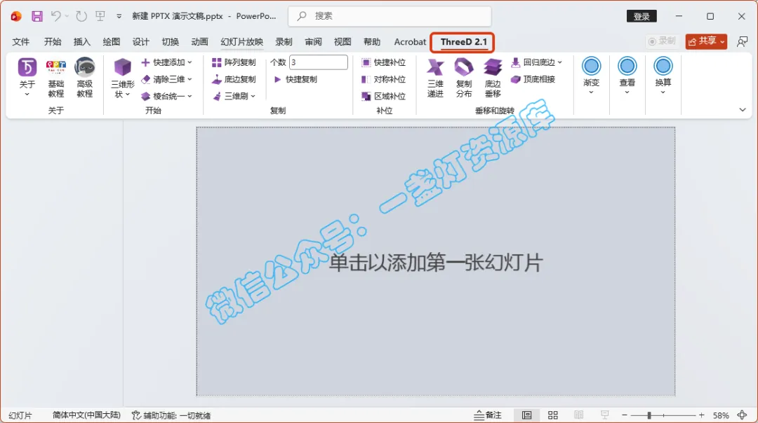 【OFFICE插件】PowerPoint(PPT)插件—ThreeD Tools安装教程ThreeD Tools 是一款专注于 PowerPoint 三维功能增强的免费插件,旨在帮助用户轻松创建专业级的立体图形与三维动画效果。该软件深度集成于 PowerPoint 中,通过提供丰富的三维参数调节工具,极大地简化了传统 PPT 三维制作中繁琐的设置流程,让用户无需专业设计软件即可实现出色的三维视觉表现。无论是三维形状的快速生成、材质的精细调整、多光源的智能控制,还是三维动画的流畅制作,用户都可通过简单的滑块拖拽或一键点击完成。ThreeD Tools 以其功能专精、操作直观的特点,成为广大 PPT 设计师、教育工作者及演示文稿制作者探索三维创意、提升作品视觉冲击力的得力助手。