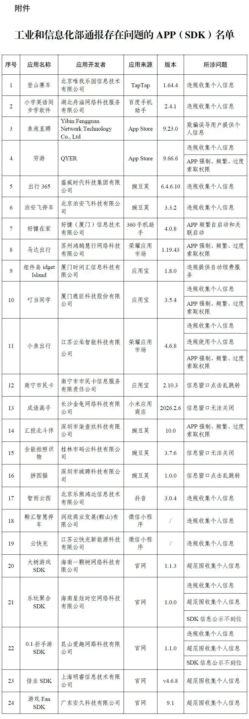 附存在问题的APP: