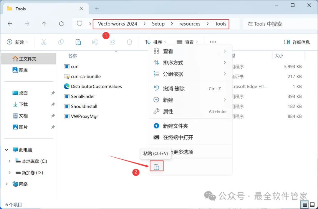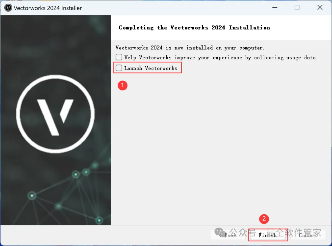 Vectorworks 2024软件安装教程附安装包下载软件简介Vectorworks 2024是一款功能强大的3D建模软件,此软件提供了许多精简但强大的建筑及产品工业设计所需的工具模组,在建筑设计,景观设计,舞台及灯光设计,机械设计及渲染等方面拥有专业化性能,提供了许多精简但强大的建筑及产品工业设计所需的工具模组。在建筑设计,景观设计,舞台及灯光设计,机械设计及渲染等方面拥有专业化性能。安装需知[软件名称]:Vectorworks 2024[软件大小]:4.44G[软件语言]:中文简体[安装环境]:Win7及以上版本[下载地址]:公众号内回复:Vectorworks[不限速下载]:免费获取百度网盘不限速下载工具。公众号内回复:不限速[注意事项]:安装前请关闭网络、杀毒软件和防火墙,否则易安装失败。公众号内回复:1[解压软件]:小编用的解压软件是Bandizip,获取Bandizip软件安装包。公众号内回复:2安装教程1、下载Vectorworks 2024软件安装包到电脑上,右键选择【解压到Vectorworks 2024\】2、右键【打开】解压后的文件夹3、找到【一键修改hosts】程序,右键选择【以管理员身份运行】它4、点击右上角【关闭按钮】5、找到【Setup】文件夹,右键【打开】它6、找到【Setup】应用程序,右键选择【以管理员身份运行】它7、点击【Next】8、回到Vectorworks 2024文件夹,找到【Crack】文件夹,右键【打开】它9、找到【shouldInstall】文件,右键点击【复制按钮】10、打开安装包路径:Vectorworks 2024/Setup/resoures/Tools,再右键文件夹的空白处,点击【粘贴按钮】11、点击【替换目标中的文件】12、回到软件安装界面,输入框输入:EZTMKS-NZMCOS-WMZMC0-Z11TCP,再点击【Next】13、点击【选择文件按钮】14、找到并选中安装包Crack文件夹下的【MK-Z11TCP.ldf】文件,再点击【打开】15、点击【Next】16、勾选【我接受】,再点击【Next】17、点击【Next】18、软件默认安装在C盘,可自定义更改软件安装位置,这里小编选择安装在D盘;点击【Next】19、点击【Install】20、软件安装中,稍等片刻21、不勾选【Launch…】,再点击【Finish】22、回到Crack文件夹,找到【Keygen】程序,右键点击【复制按钮】23、回到桌面,右键桌面上的【Vectorworks 2024软件图标】,点击【打开文件所在的位置】24、右键文件夹的空白处,点击【粘贴按钮】25、找到粘贴的【Keygen】程序,右键选择【以管理员身份运行】它26、密码输入:cgpersia-zmco,再点击【Proceed】27、点击【PATCH】28、点击右上角【关闭按钮】29、回到桌面,右键桌面上的【Vectorworks 2024软件图标】,点击【打开】30、软件正在打开,启动界面如下:31、点击【Cancel】32、软件打开成功,运行界面如下:33、以上就是Vectorworks 2024软件安装的全过程,要是对你有帮助的话,请为小编点个赞!免责声明:软件资源均来源于网络,仅供用户交流学习与研究使用,版权归属原版权方所有,版权争议与本公众号无关,用户本人下载后不能用作商业或非法用途,否则后果均由用户承担责任;如果您访问和下载此文件,表示您同意只将此软件用于参考、学习而非其他用途,否则一切后果请您自行承担,请于下载后24小时内删除,不允许用于商业用途,否则法律问题自行承担。如果您喜欢该软件,请支持正版软件,购买注册,得到更好的正版服务。