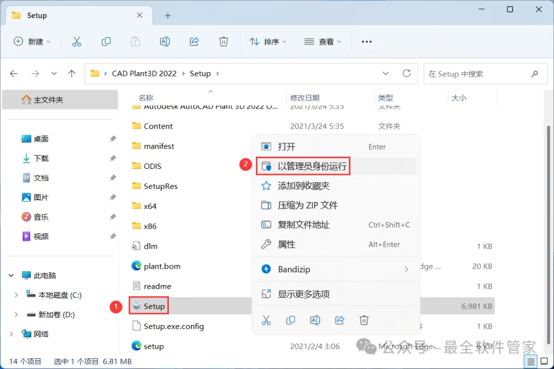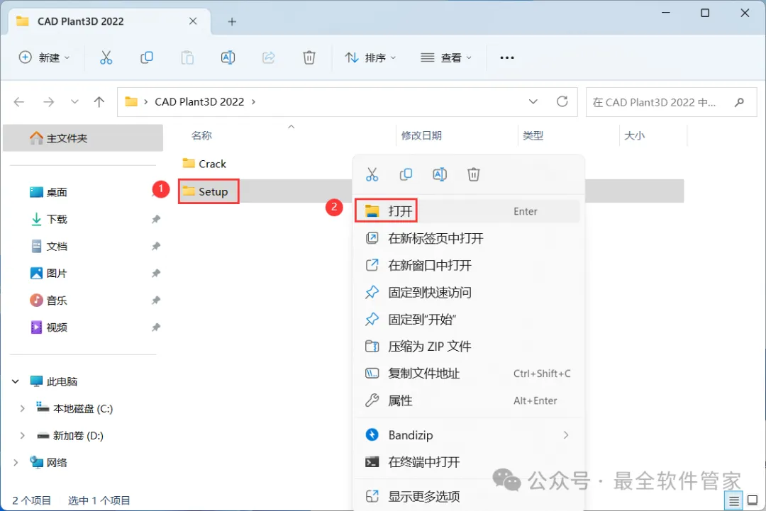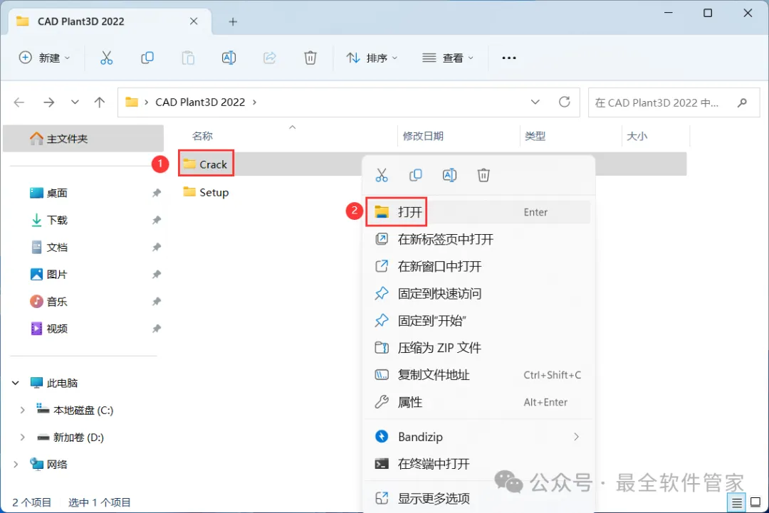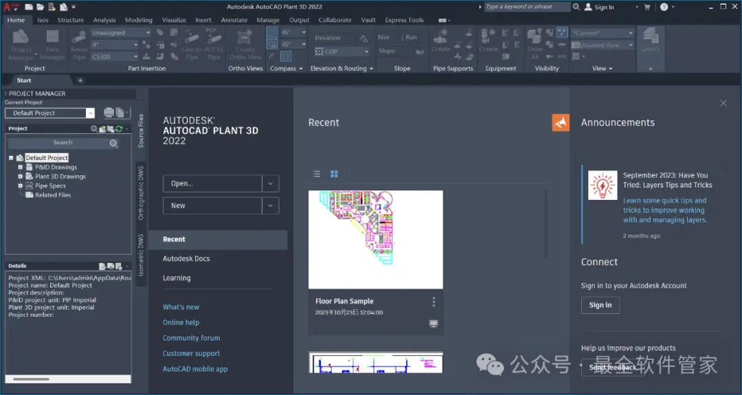 CAD Plant3D 2022软件安装包及详细安装教程软件简介CAD Plant3D 2022是一款合理而强大的基于3D工厂的流程设计和布局应用程序。 它满足市场上加工厂行业部门的需求,并提供便宜且方便的解决方案,既可以学习又可以保存。 基于世界级AutoCAD软件平台的熟悉基础,它为当前 AutoCAD用户提供了无与伦比的易用性和比平均学习周期短的时间。 凭借针对 3D环境中的过程工厂设计进行优化的行业领先界面,它以提高生产力来解决标志性工厂和过程设计而感到自豪。安装需知[软件名称]:CAD Plant3D 2022[软件大小]:2.67G[软件语言]:中文简体[安装环境]:Win10及以上版本[下载地址]:公众号内回复:CADPlant3D[不限速下载]:免费获取百度网盘不限速下载工具。公众号内回复:不限速[注意事项]:安装前请关闭网络、杀毒软件和防火墙,否则易安装失败。公众号内回复:1[解压软件]:小编用的解压软件是Bandizip,获取Bandizip软件安装包。公众号内回复:2安装教程1、下载CAD Plant3D 2022软件安装包到电脑上,右键选择【解压到CAD Plant3D 2022\】2、右键【打开】解压后的文件夹 3、找到【Setup】文件夹,右键【打开】它4、找到【Setup】应用程序,右键选择【以管理员身份运行】它 5、语言选择【简体中文】,勾选【我同意】,再点击【Next】6、软件默认安装在C盘,可自定义更改软件安装位置,这里小编选择安装在D盘;点击【Next】 7、点击【Install】8、软件安装中,稍等片刻 9、软件安装成功,点击右上角【关闭按钮】10、回到CAD Plant3D 2022文件夹,找到【Crack】文件夹,右键【打开】它 11、找到【AutoCAD2023…Patch】程序,右键点击【复制按钮】12、回到桌面,右键桌面上的【AutoCAD Plant3D 2022软件图标】,点击【打开文件所在的位置】 13、右键文件夹的空白处,点击【粘贴按钮】14、找到粘贴的【AutoCAD2023…Patch】程序,再右键选择【以管理员身份运行】它 15、点击【应用】16、点击右上角【关闭按钮】 17、回到桌面,右键桌面上的【AutoCAD Plant3D 2022软件图标】,点击【打开】18、软件正在打开,启动界面如下: 19、软件打开成功,运行界面如下:20、以上就是CAD Plant3D 2022软件安装的全过程,要是对你有帮助的话,请为小编点个赞! 免责声明:软件资源均来源于网络,仅供用户交流学习与研究使用,版权归属原版权方所有,版权争议与本公众号无关,用户本人下载后不能用作商业或非法用途,否则后果均由用户承担责任;如果您访问和下载此文件,表示您同意只将此软件用于参考、学习而非其他用途,否则一切后果请您自行承担,请于下载后24小时内删除,不允许用于商业用途,否则法律问题自行承担。如果您喜欢该软件,请支持正版软件,购买注册,得到更好的正版服务。