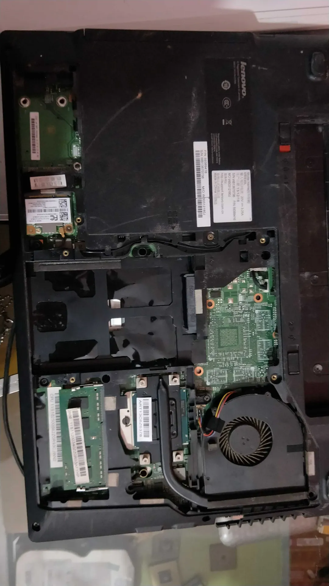后盖取下后,可以看到笔记本的内部结构。找到内存插槽: