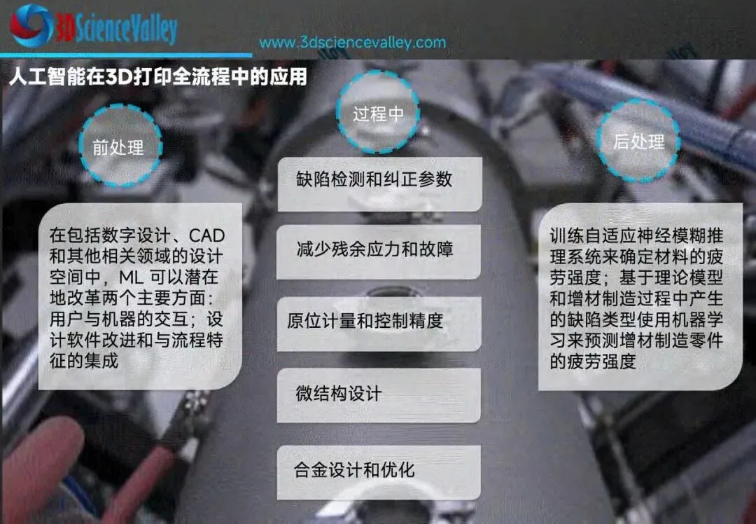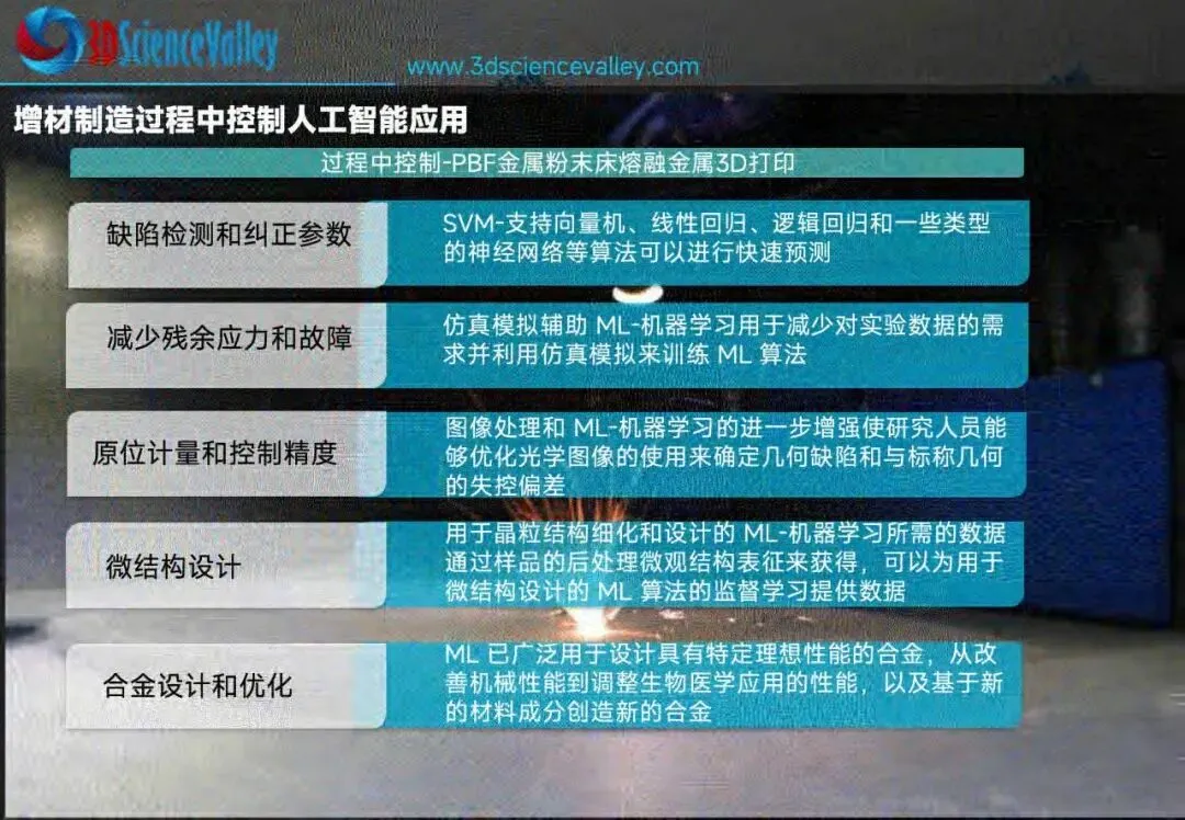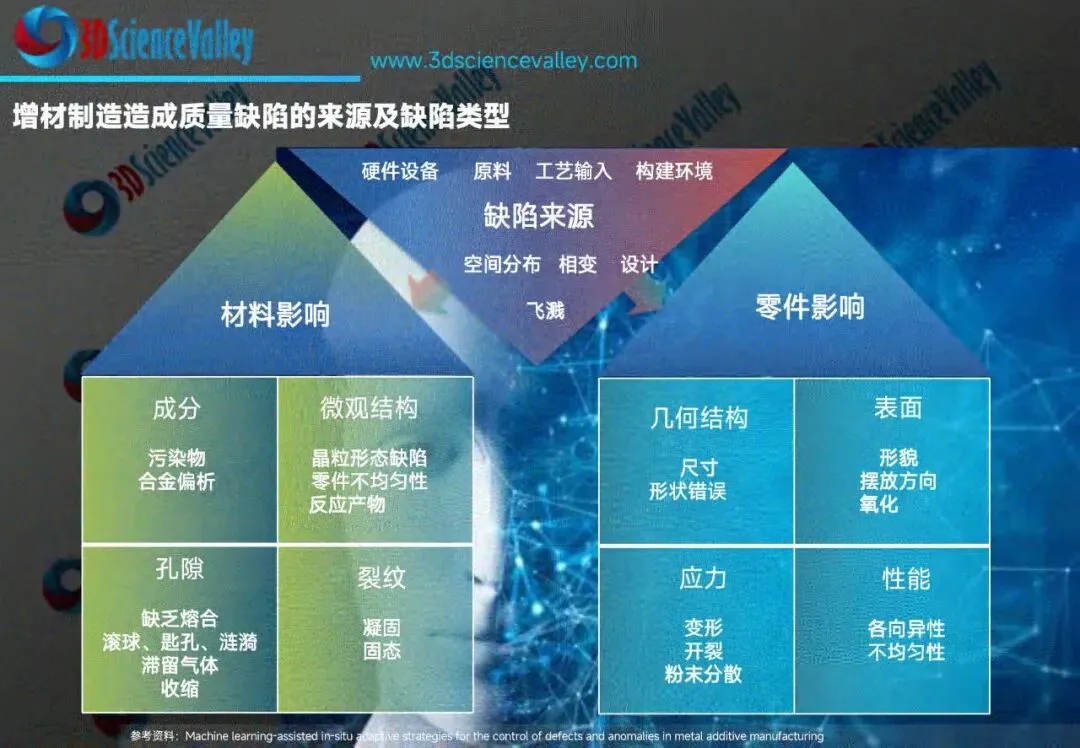 材料开发方面,随着数字经济时代的到来,大数据人工智能等技术的应用,将大大缩短材料研发时间,提升材料开放的效率。在质量控制方面,更离不开人工智能的赋能,增材制造工艺生产的零部件经常受到工艺引起的快陷的困扰,例如孔隙裂纹和残余应力引起的变形,从而影响部件质量和一致性。零件内的工艺陕会降低机械性能和疲劳性能,导致其在低于设计的操作限制时失效。