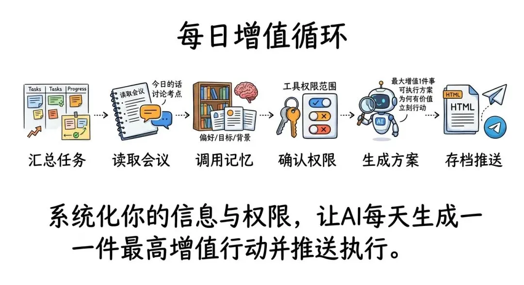 你的任务看板(你在推进什么)你的会议记录(你最近在谈什么)你的记忆库/知识库(你是谁、偏好什么、目标是什么)你的工具权限(它能帮你做到哪一步)