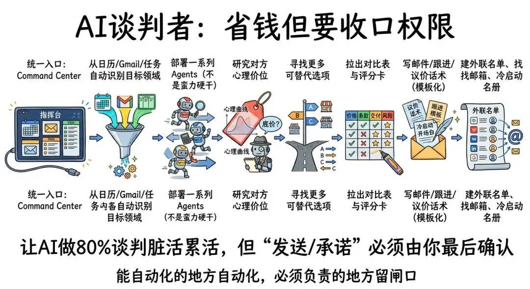 如果你现在只能选一个场景开始,你会选哪一个?是“会议行动项自动进任务板”,还是“夜间 agent 每天给你一份人生升级建议”,还是“谈判者帮你省钱/赚钱”?欢迎在评论区告诉我,我也想看看大家最想先把 AI 用到哪里。