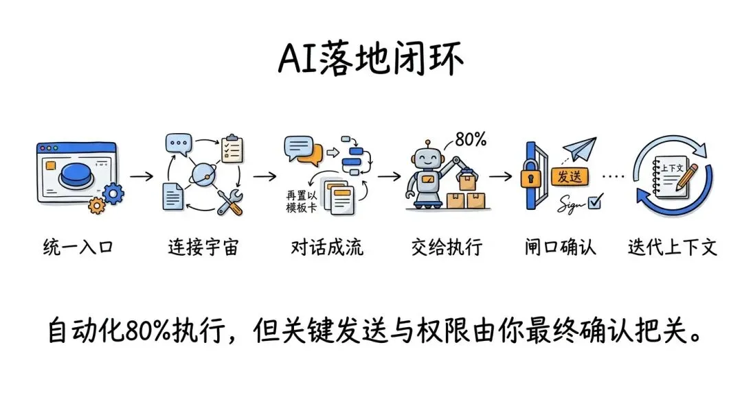 这也是把 AI 真正落地到工作中的关键心法:能自动化的地方自动化,必须负责的地方留闸口。