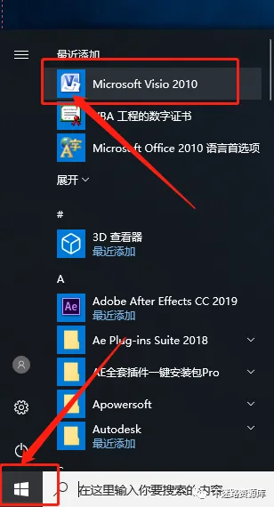 11.在开始菜单找到Visio软件,双击打开(拖动到桌面上生成快捷方式)