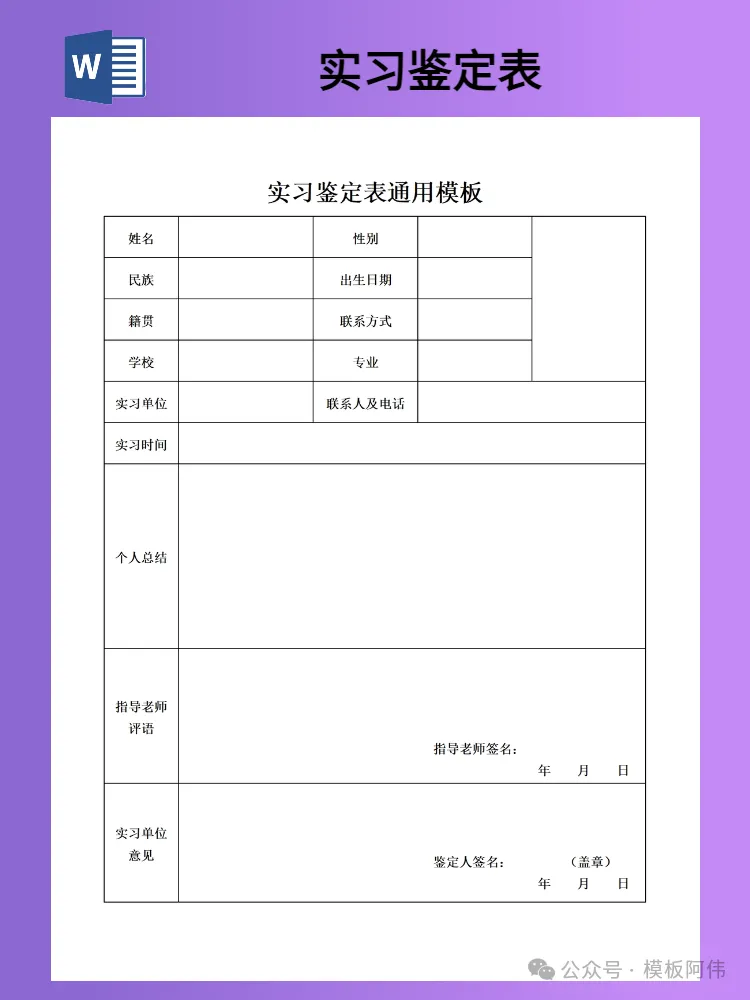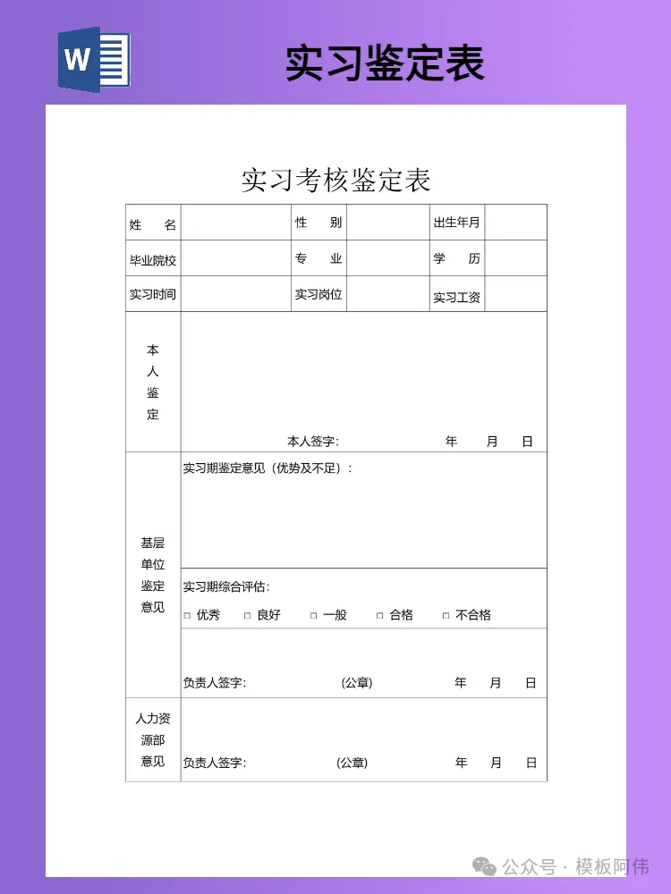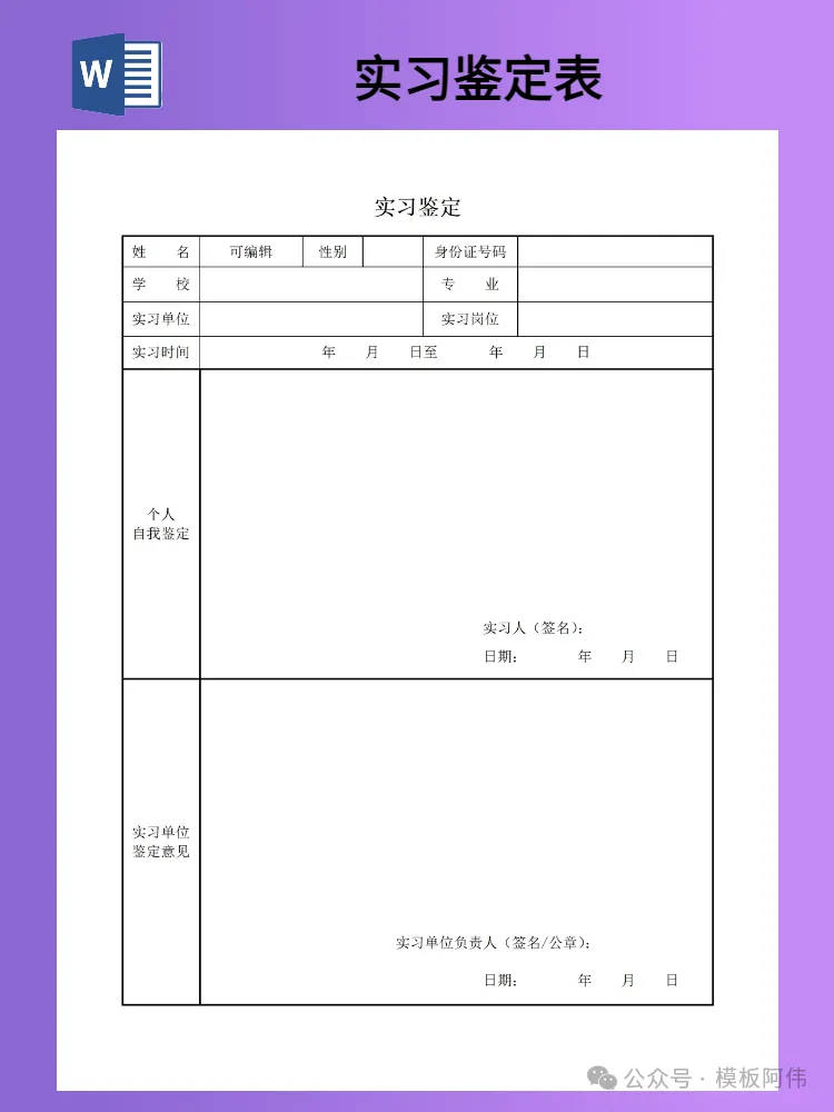 【2026】毕业实习鉴定表模板(word电子版下载)本文内容分享【实习鉴定表模板】