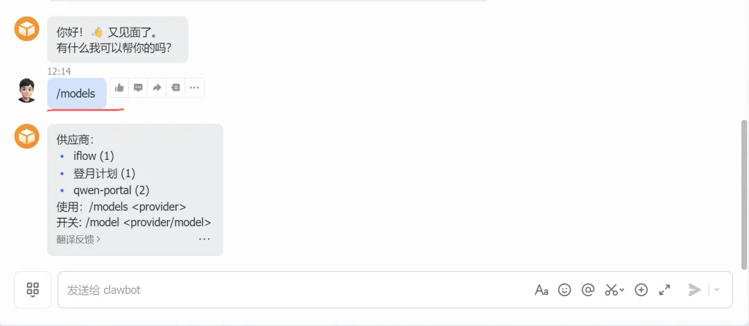 4 / 备用模型我的大脑需要建立一个备份链,如果第一个模型发生一些问题,如果停止工作,而我没有去备份的,那就麻烦了,需要进入终端,手动修复一些问题,但是如果有备用模型就可以使用/models进行切换。