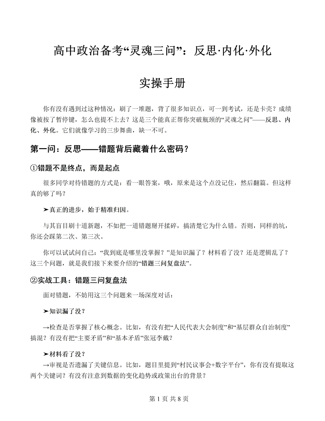 复习关键:带着问题背政治,高中政治7册教材背诵资源(核心必答+拓展补充+答题逻辑)