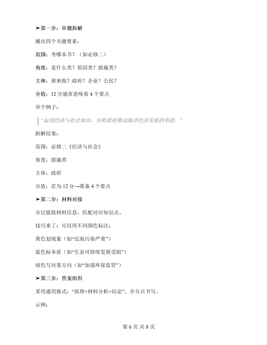 5步训练:高考政治主观题答题法备考突破(附word免费下载)答题得分玄学变科学