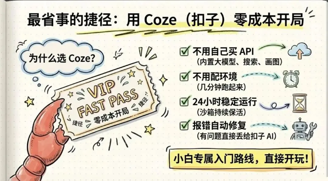 没有 API 基础、不想折腾环境的人,Coze 是目前最省事的入门路子,直接开玩。