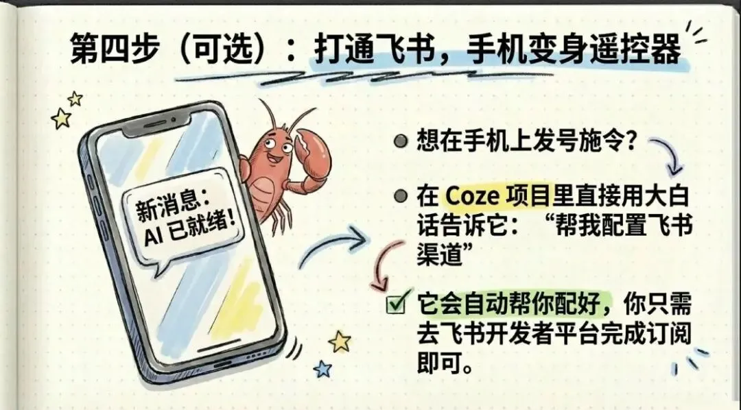 第四步(可选)、打通飞书,手机也能随时指挥