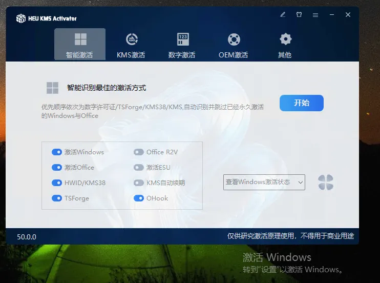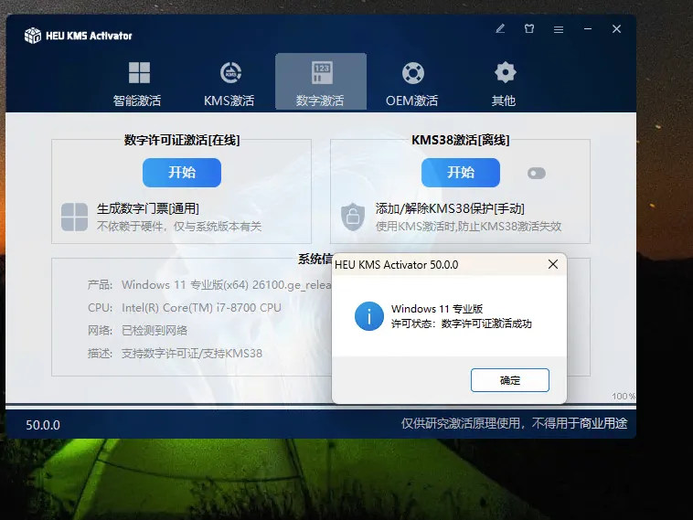 Windows/Office 激活工具KMS是一款简洁高效的全能KMS/OEM激活工具,适用所有Windows, Office版本,无需联网即可一键激活。注意:软件无毒,打开可能会被杀毒软件拦截,系统里面Windows安全中心允许程序操作。此时小编的Windows11系统尚未激活,打开选择数字激活,点击数字许可证激活即可激活,现在下图已经不显示激活Windows图标。1. 智能激活:自动识别并选择最佳激活方式,包括数字许可证、KMS38、OEM和KMS2. Windows10和Windows11系统可以使用数字永久激活。Office激活小编就不演示了,具体教程小编放在文件夹了,需要可直接获取。在公众号:软小白工坊,对话框回复:009,即可获取