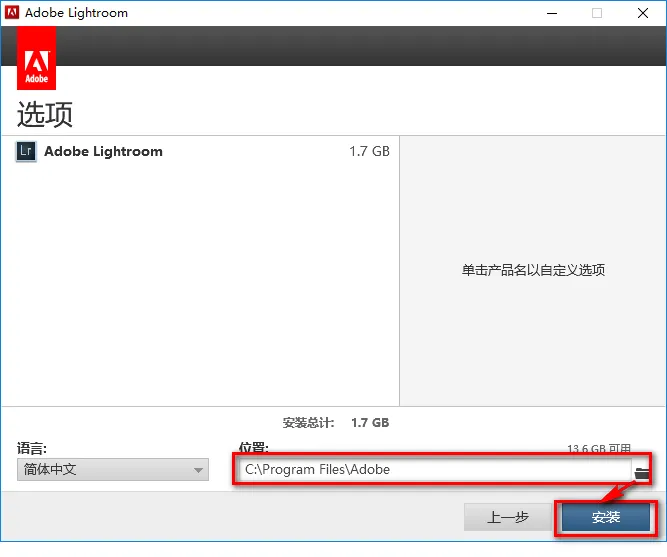 温馨提示:若打开没有注册机,说明被电脑杀毒软件隔离了,关闭杀毒软件重新解压即可。 14.第一个选项卡选择Adobe Lightroom,点击“Install”