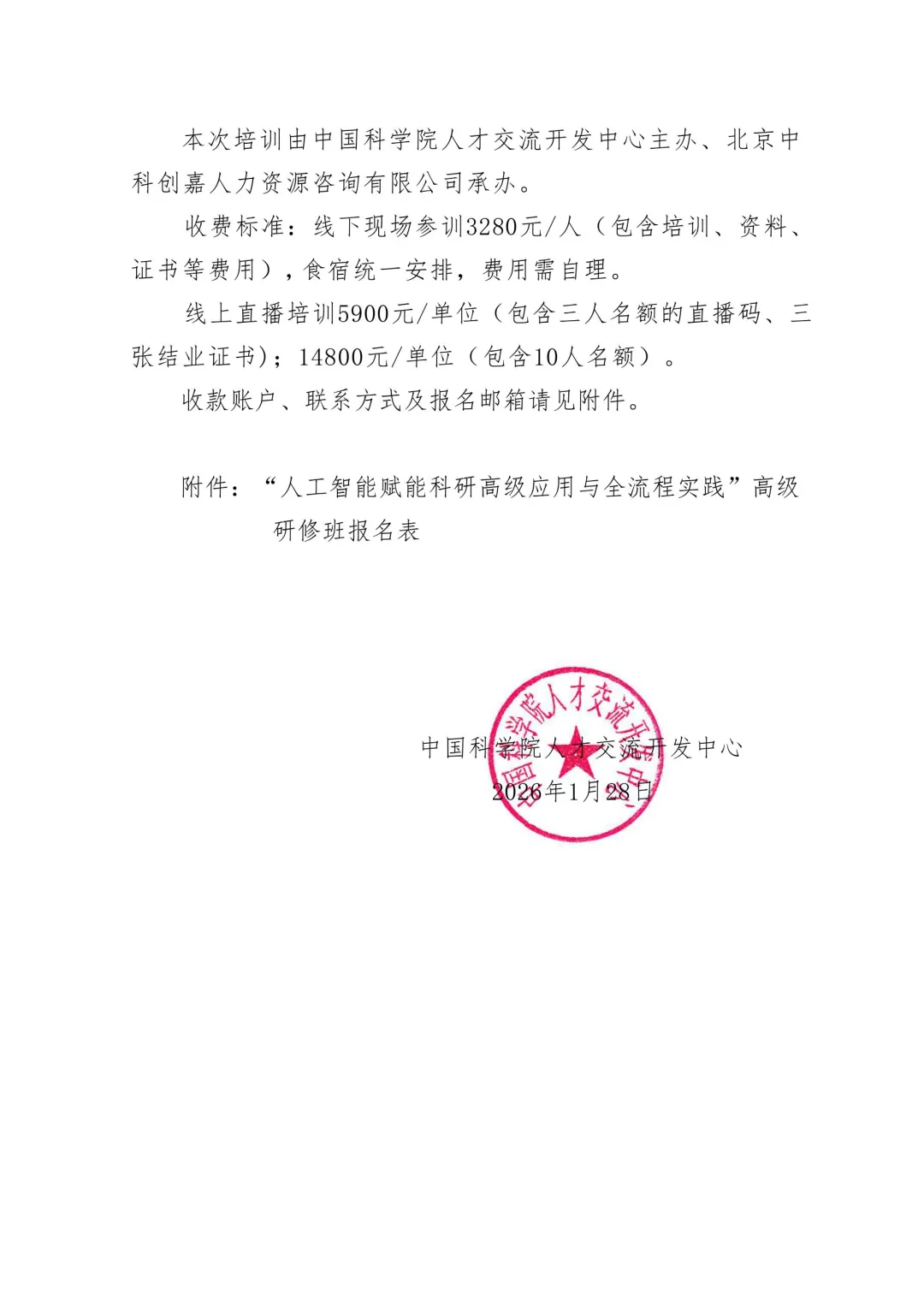本次培训由中国科学院人才交流开发中心主办、北京中 科创嘉人力资源咨询有限公司承办。