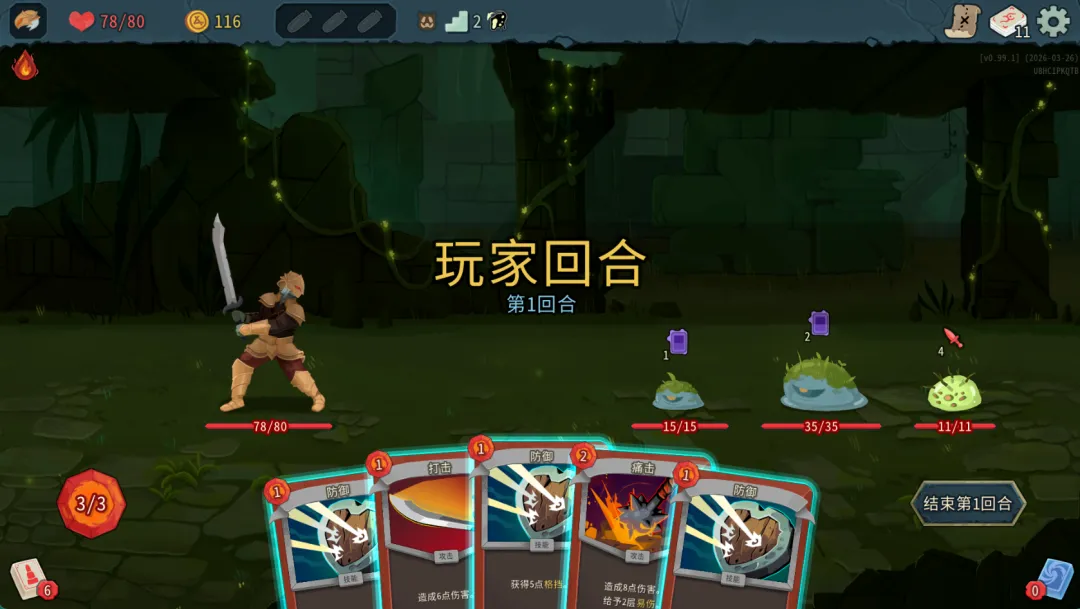 3、在每回合开始时,你会抽取新的卡牌,你的能量也会得到补充。