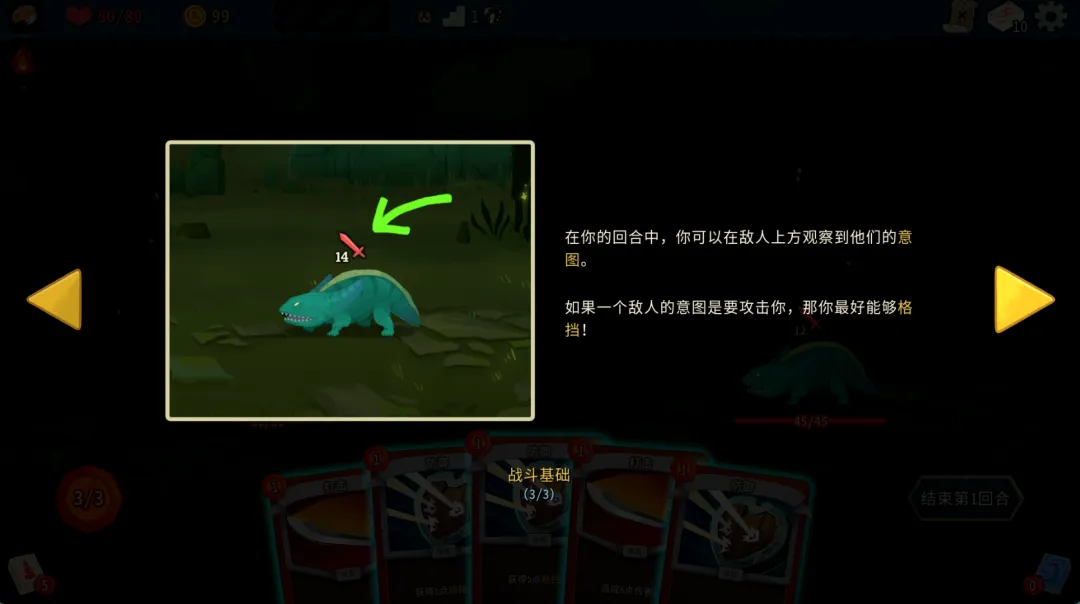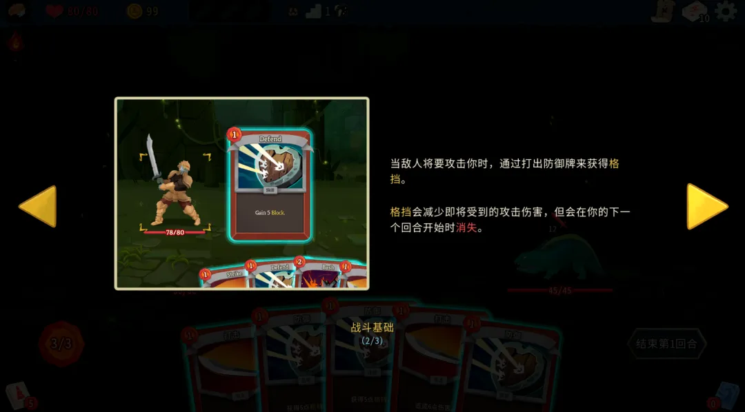4、当敌人将要攻击你时,通过打出防御牌来获得格挡。