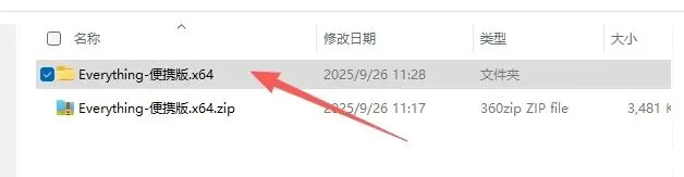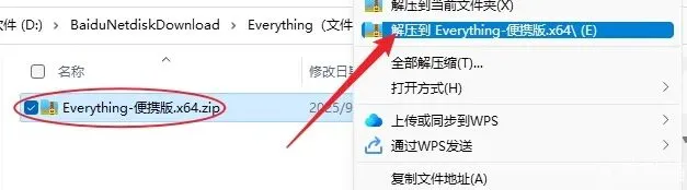 1. 解压安装包:右键点击【Everything-便携版】压缩包,使用已安装的解压软件,选择解压到【Everything-便携版】文件夹中。