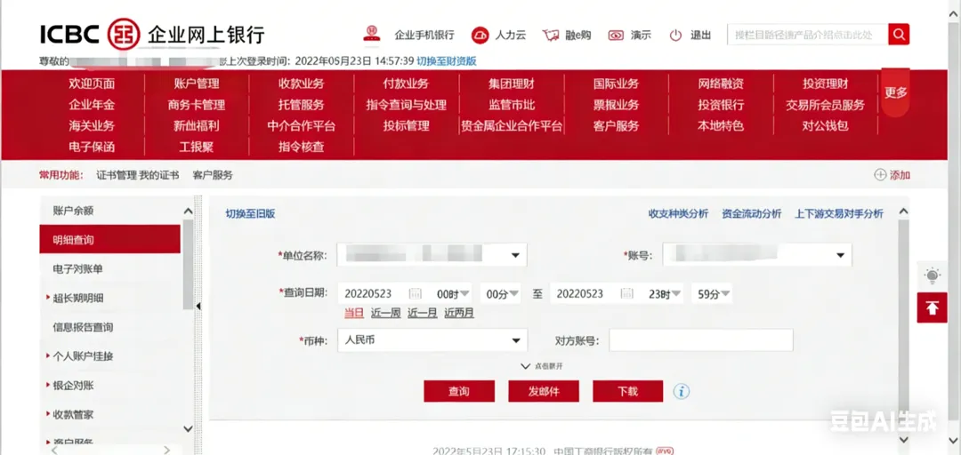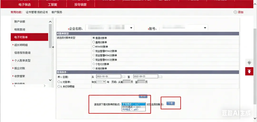 1. 登录工行界面-账户管理-电子对账单-选择下载格式-点击下载-保存到相应文件夹即可