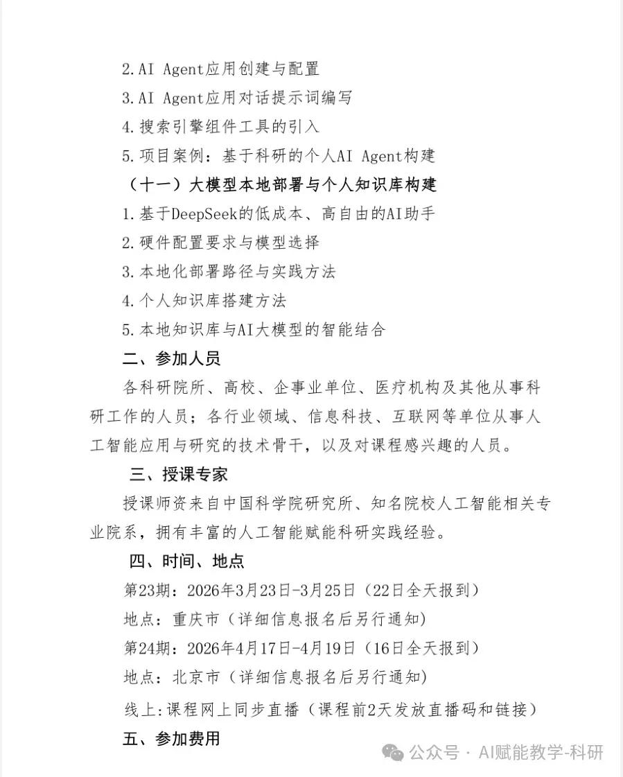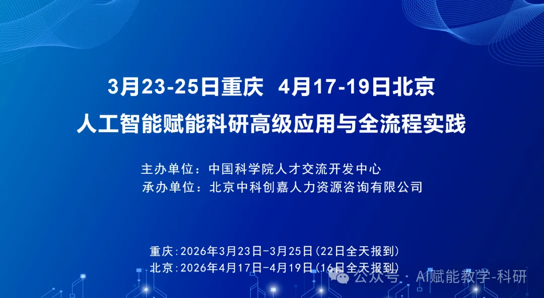 如果您已准备好,告别单点、零散的尝试,系统性地将AI内化为您的“第二大脑”,我们诚挚邀请您参加4月17-19日在北京举办的第24期研修班。名额有限,立即行动,开启您的高效科研新篇章。
