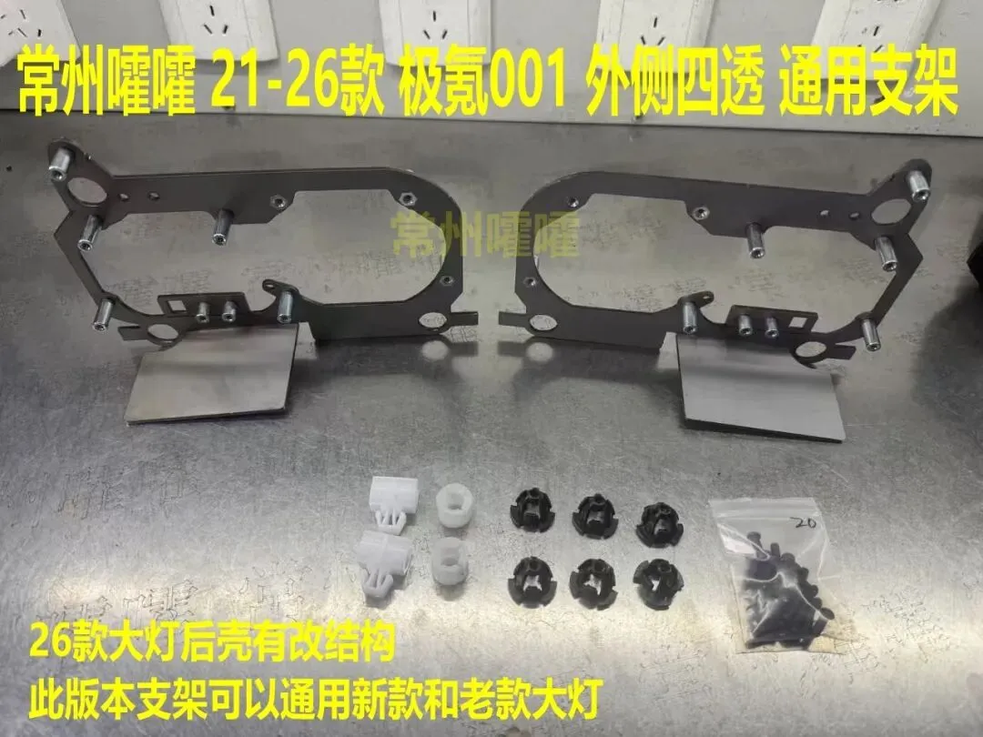 〖补充教程〗常州嚯嚯 【21-26款 极氪001 外侧3寸四透 通用支架】详细图解!〖补充教程〗常州嚯嚯 【21-26款 极氪001 外侧3寸四透 通用支架】详细安装图解!此款灯在26款 内部结构有改动 ,前部看上去和老款一样的,后壳结构有变动。今天介绍的此款支架可以通装老款和新款大灯,但注意支架使用细节不同,请仔细看下图解。新款大灯后壳细节:1.需要保留光源,使用不共负宽压线组。2.只能安装3寸方透镜。支架细节图:下面是详细安装步骤: