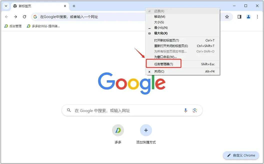 1、点击浏览器窗口最上面的部分,鼠标右键单击可以看到有一个任务管理器;