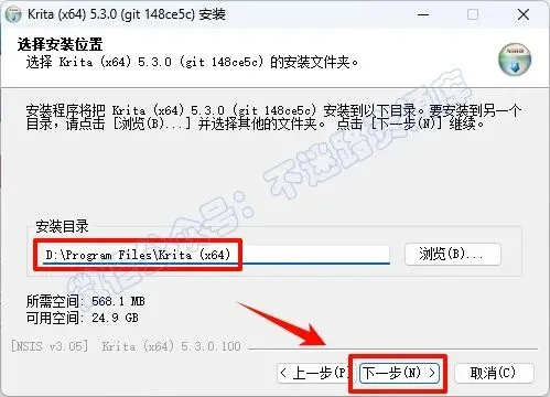 6.选择软件安装路径,建议和教程中的保持一致,本例安装到D盘(将路径地址中的首字符C改为D表示安装到D盘,安装路径不要出现中文),点击“下一步”