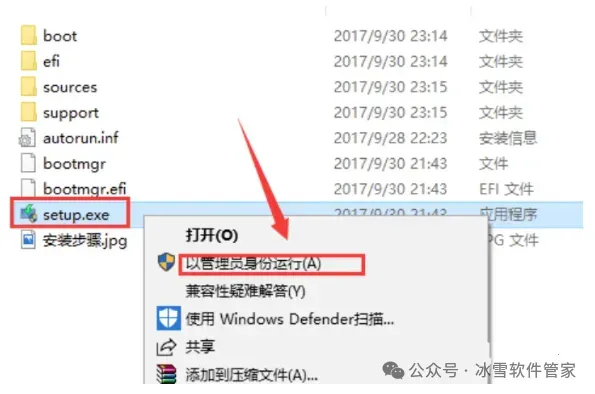 3.鼠标右击【setup.exe】可执行文件,选择【以管理员身份运行】。