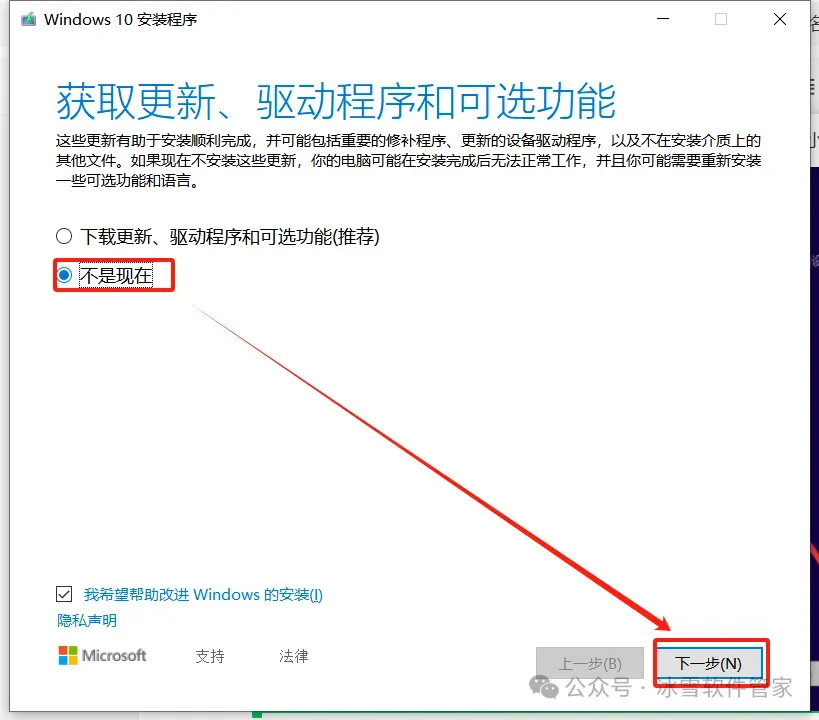 4.勾选【不是现在】,然后点击【下一步】。