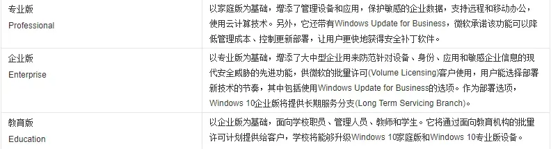 附:Windows10各版本介绍,供你参考。
