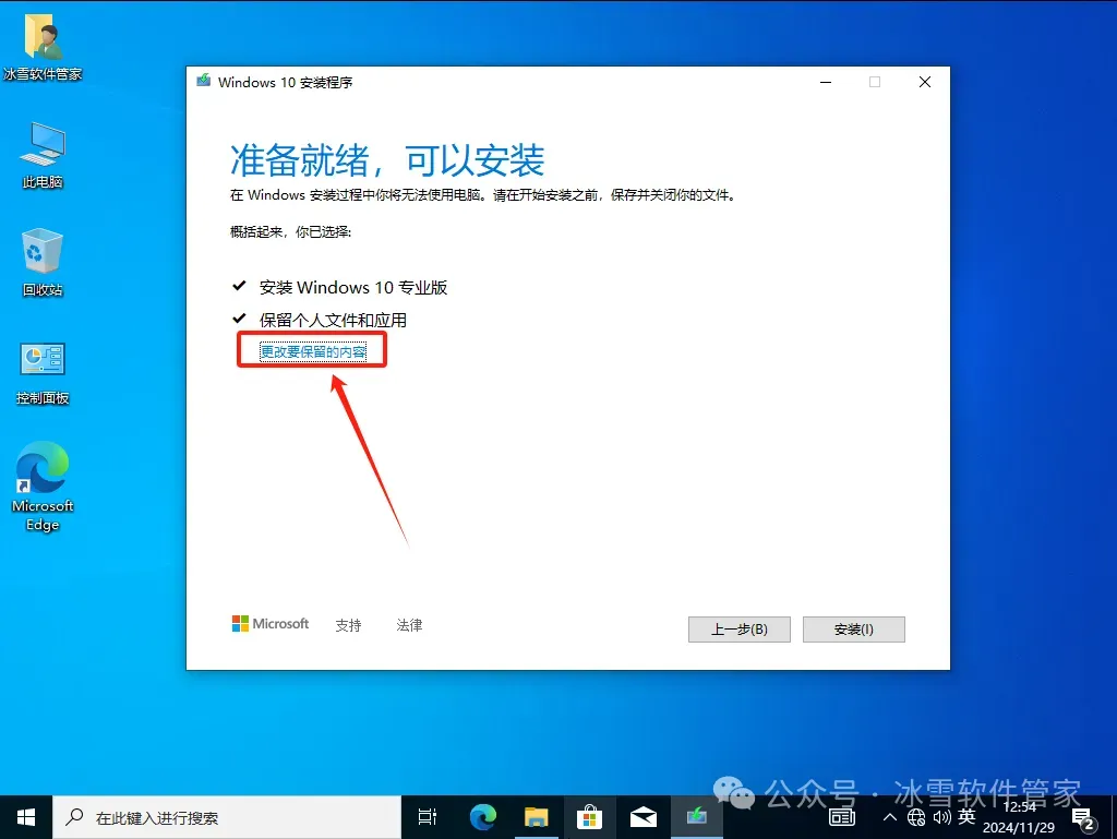 7.点击【更改要保留的内容】。