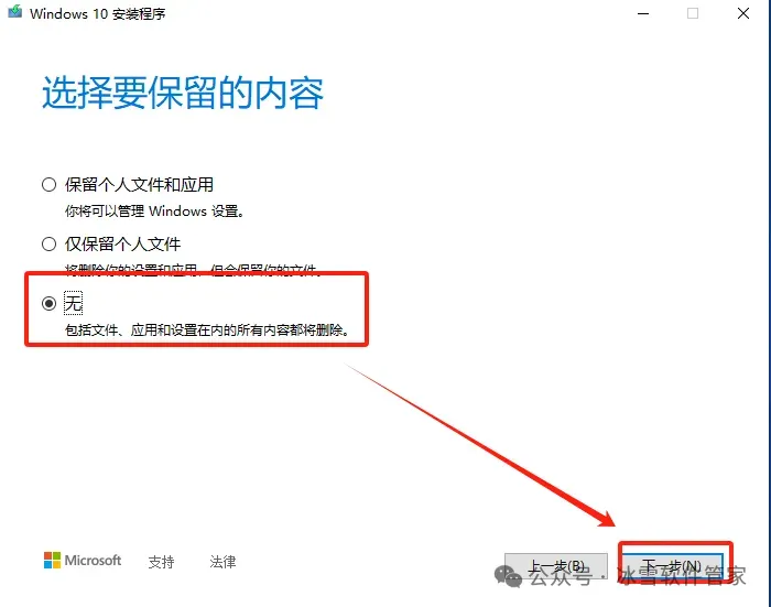8.根据自己需求选择是否保留内容,我这里选择【无】,然后点击【下一步】。