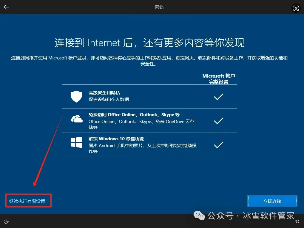 15.点击【继续执行有限设置】
