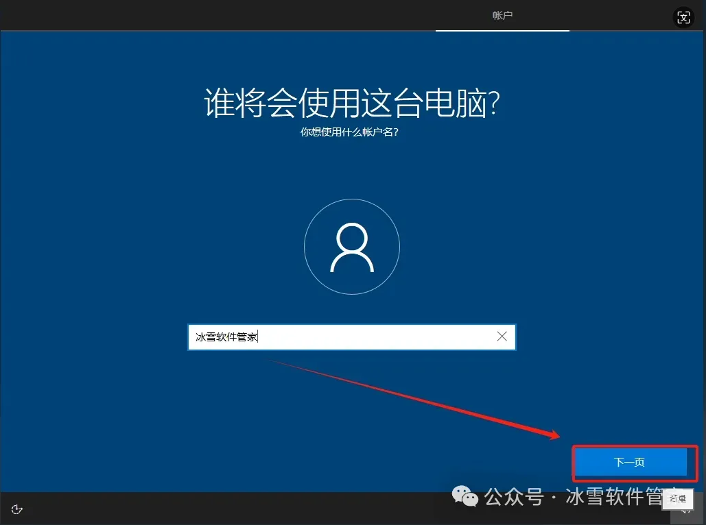 16.设置自己的账户名称,然后点击【下一步】。