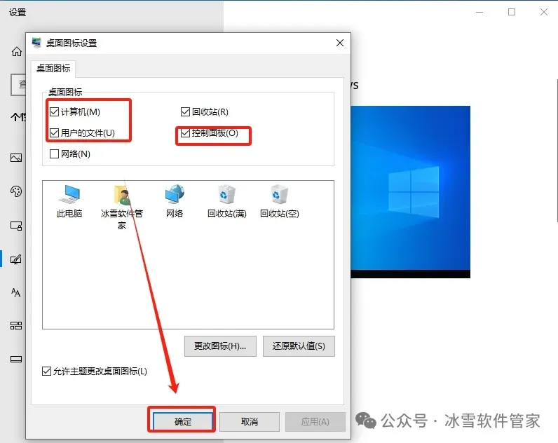 23.勾选【计算机】,然后点击【确定】,此时桌面就会显示计算机图标。