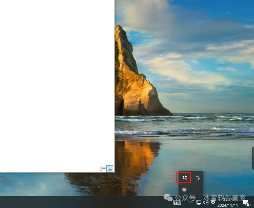1)点击系统右下角windows安全中心