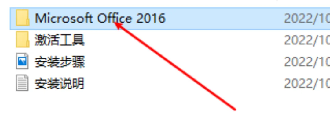 打开解压后的文件夹,找到 Microsoft Office 2016 文件夹并双击进入。