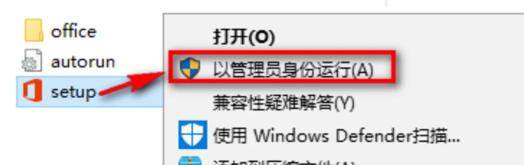 找到 Setup 文件,鼠标右键选择“以管理员身份运行”。