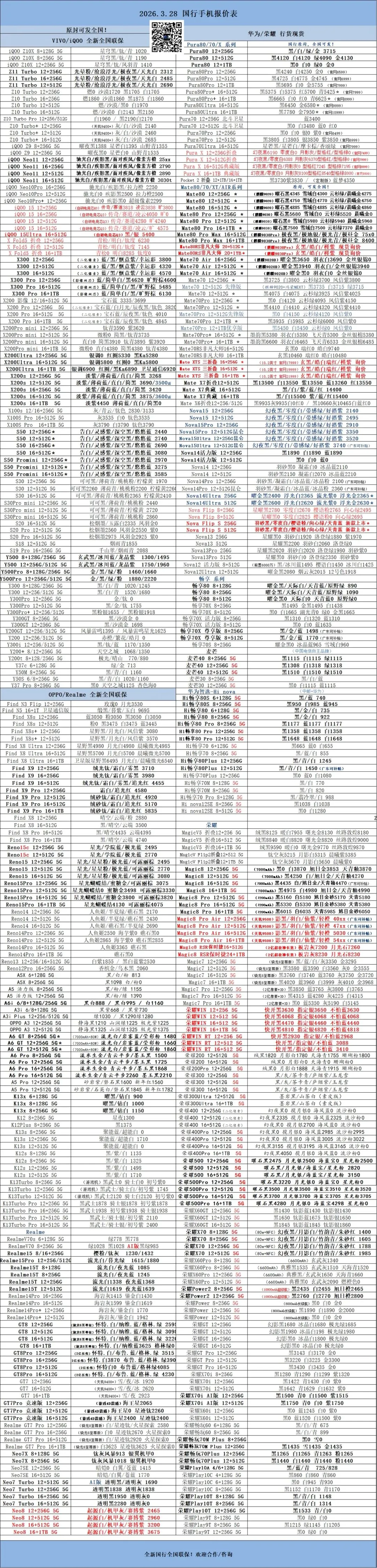 华为 荣耀 OPPO VIVO 小米 联想 异能者 华硕 红魔 科大讯飞(苹果请下拉查询)