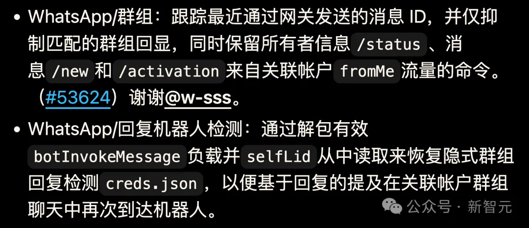 WhatsApp 群组里,OpenClaw 之前会把自己发出去的消息重复处理一遍,相当于自己回复自己,现在修复好了。