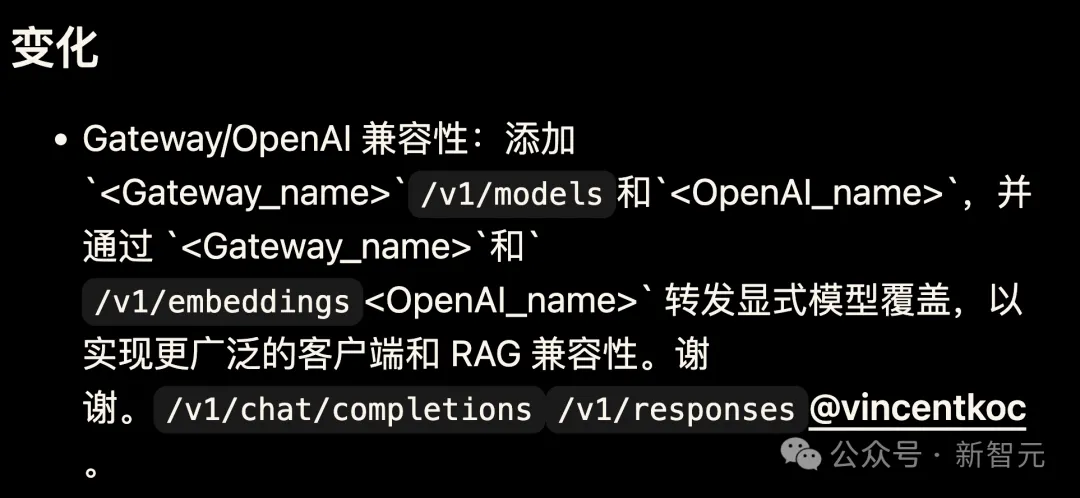 网关 / OpenAI 兼容性:新增 /v1/models 和 /v1/embeddings 端点,并支持通过 /v1/chat/completions 和 /v1/responses 透传显式模型覆盖参数,以兼容更多客户端和 RAG 应用场景。
