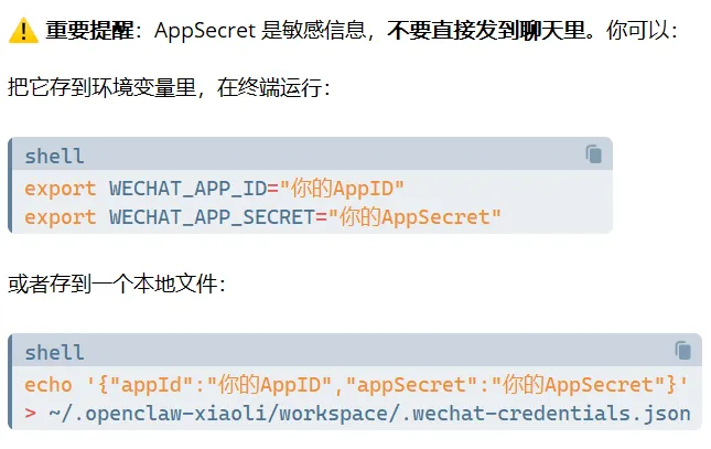 把 AppID 和 AppSecret 告诉你的 AI 助手,配置完成。