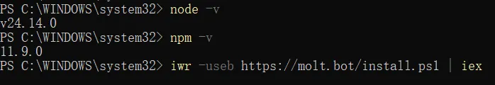 后面,安装Node.js、验证版本信息,安装OpenClaw就是轻车熟路了。
