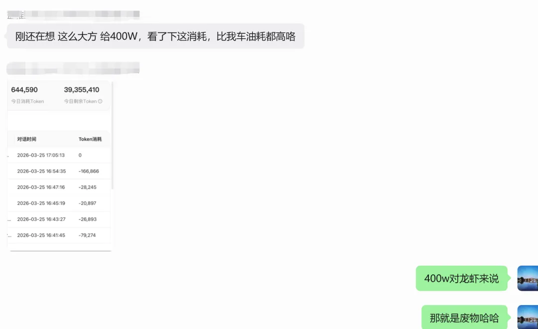 想要龙虾干活,你要给token这是肯定的,就想开车费用费电一样,你要车跑起来甚至跑的快,肯定要给油,有些豪车还要给➕95的油