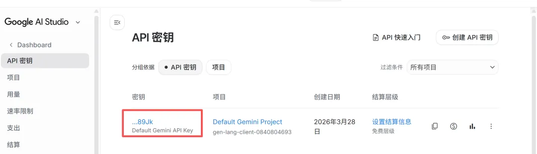 选Googel Gemini API Key