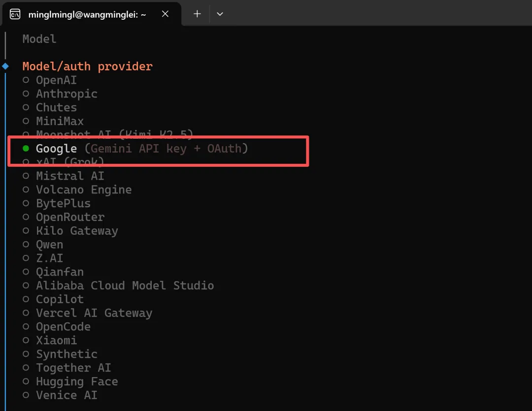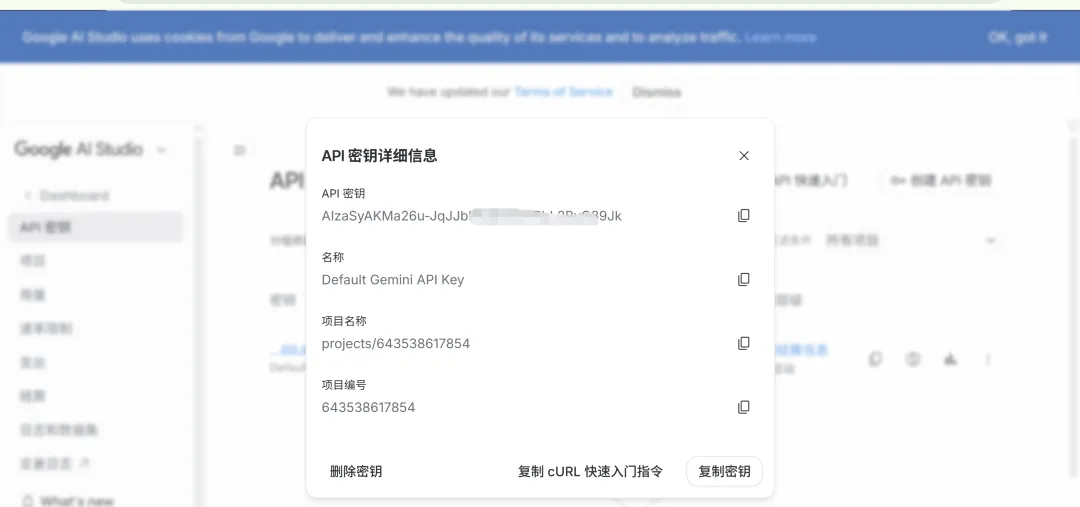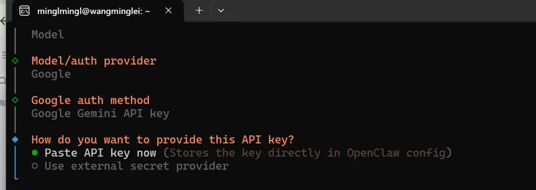 复制密钥,在OpenClaw Onboard或者模型config里选择Gemini的 API key 配置