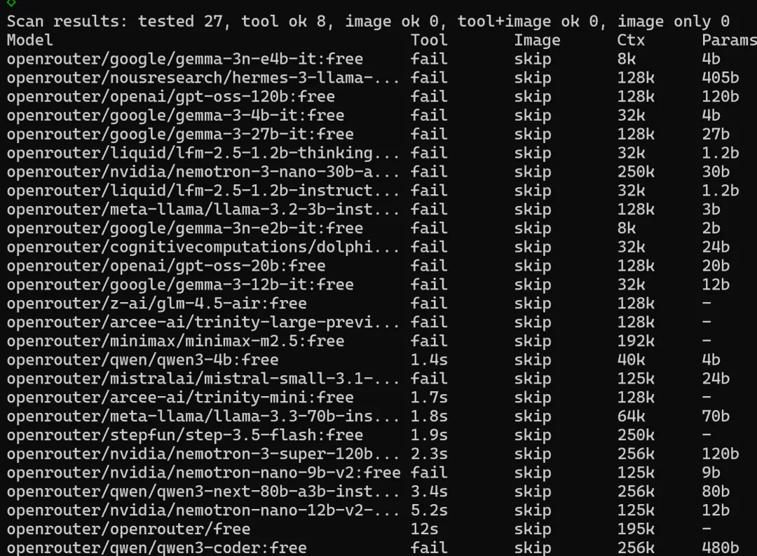 可以用 OpenClaw cli 命令,扫描Openrouter 提供的免费模型