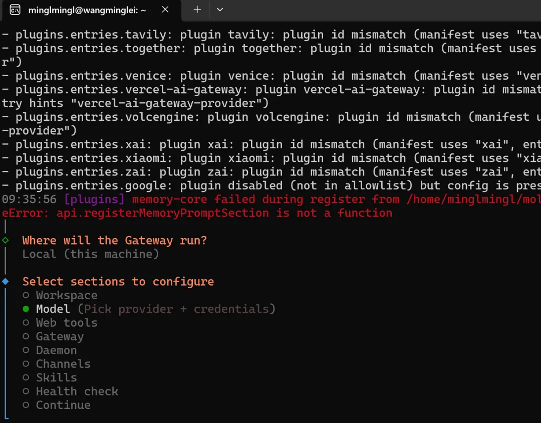 openclaw configure选Model